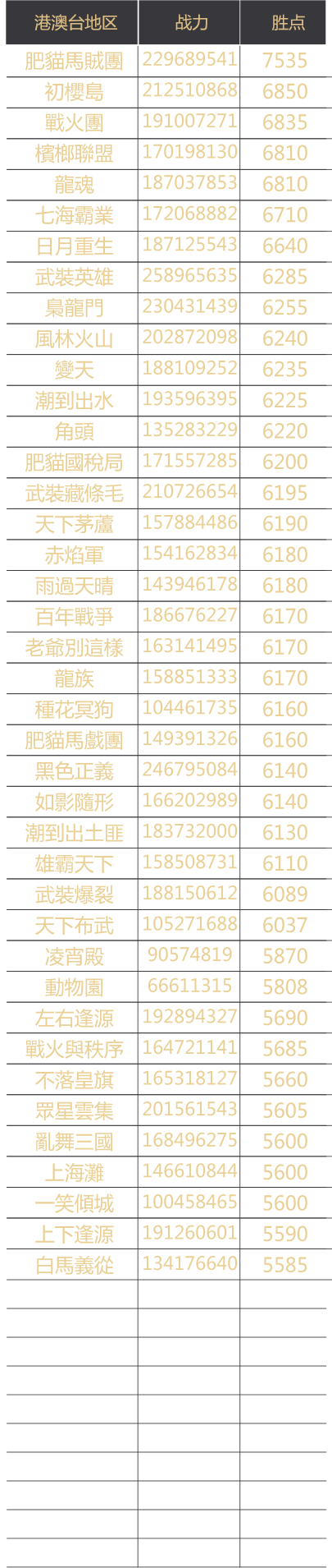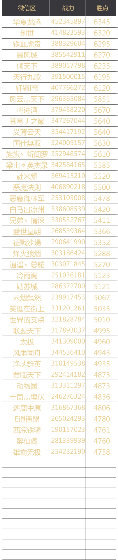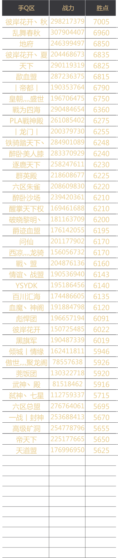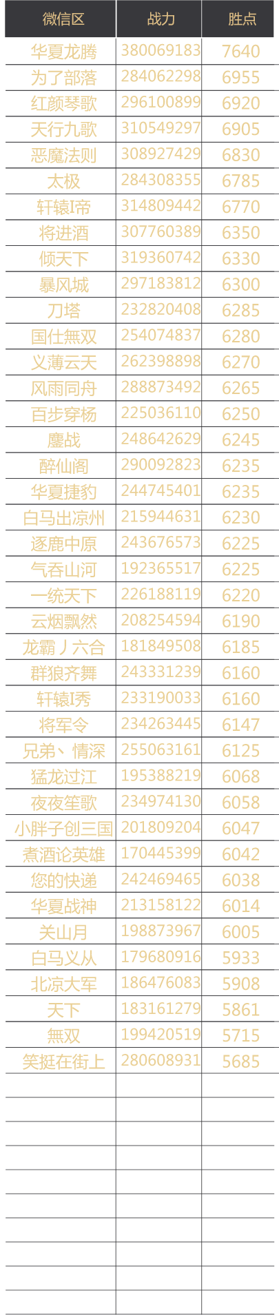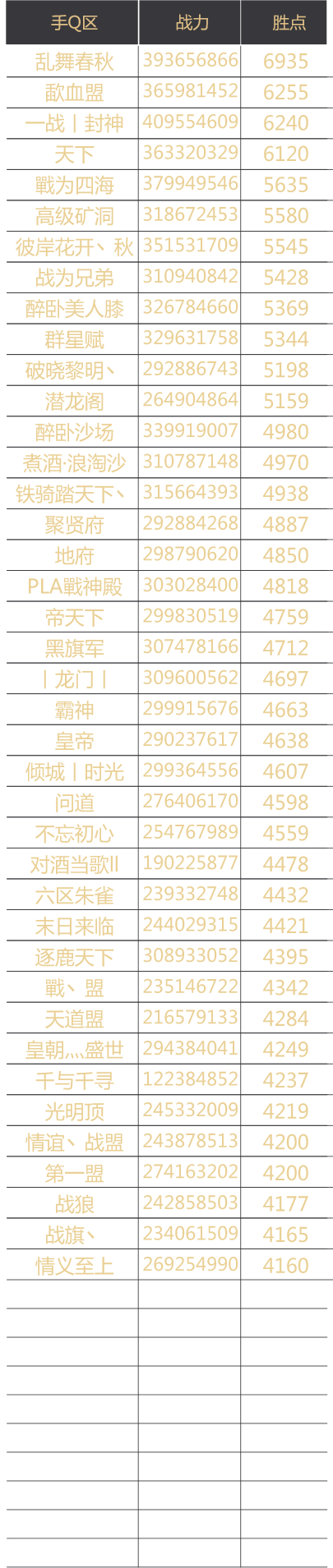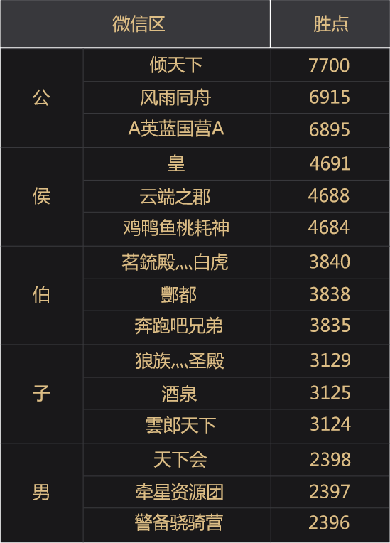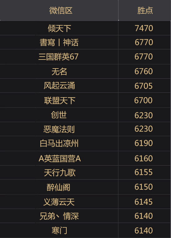 赛季官渡之战联盟胜点排名
