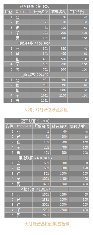 ● 按照上期联盟胜点区分好联赛后,首轮比赛根据各联赛中联盟的战力进行排名,分“公侯伯子男”5个段,根据对应段位给予初始胜点