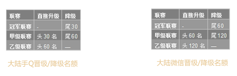 ● 甲级联赛:头30晋级冠军联赛,尾60降级至甲级联赛