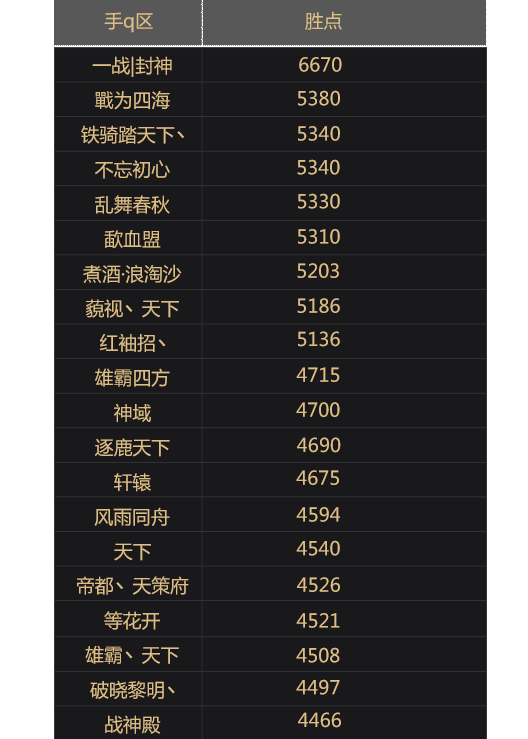 赛季五丈原之战联盟胜点排名